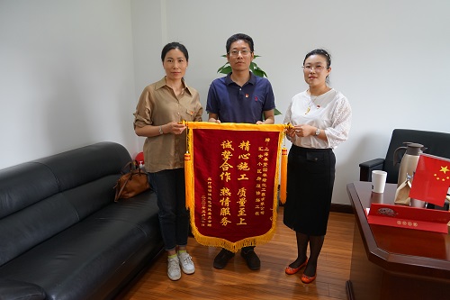 5月27日,莊行鎮邬橋社區居民委員會(huì)蔣書記送來了一份特殊的禮物——赫然印著(zhe)“精心施工,質量至上;誠摯合作,熱情服務。”幾個金色大字的錦旗。