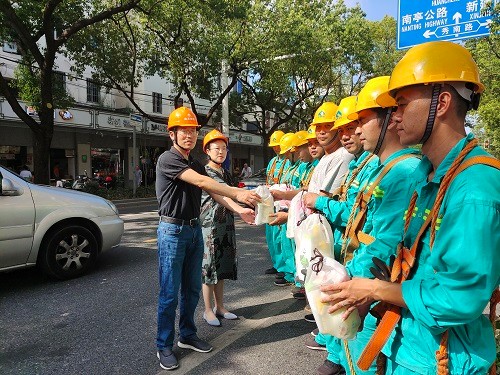 8月18日,園林公司領導班子帶上慰問品,分組前往海灣旅遊區房修項目、海灣鎮房修項目等工地現場及解放西路養護路段,慰問了高溫下堅守崗位的一線職工,爲他們送去了夏日的清涼,感謝他們的辛勤付出,并強調要注意勞逸結合。
