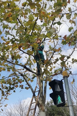 在修剪作業中,修剪人員結合樹木生長(cháng)習性,重點對(duì)枯死枝進(jìn)行整形修剪,這(zhè)樣做不但調整了枝幹的疏密、開(kāi)合、布局,有利于來年新枝的萌發(fā),而且還(hái)提高了樹木抗風能(néng)力。