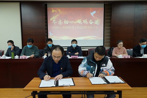 園林公司黨支部副書記、工會(huì)主席楊潔宣讀《關于表彰公司2020年度先進(jìn)個人的決定》,領導班子爲2020年度園林公司“先進(jìn)工作者”頒獎。随後(hòu)公司黨支部副書記、總經(jīng)理朱強與安全質量部蔣輝平簽訂安全責任書。