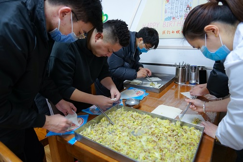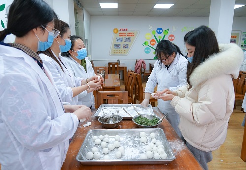 活動現場熱鬧非凡,大家聚在一起(qǐ),有說(shuō)有笑地開(kāi)始包湯圓。揉面(miàn)、壓平、取少許餡放在面(miàn)皮上包起(qǐ)來,一個大大白白胖胖的湯圓就(jiù)完成(chéng)了。幾位沒(méi)包過(guò)湯圓的職工也有樣學(xué)樣,用不娴熟的手勢搓出一個又一個雪白的湯圓。
