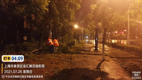 25日淩晨,“煙花”帶來的風雨使得奉賢區内道(dào)路好(hǎo)幾棵大樹出現倒伏情況。巡查人員一旦發(fā)現險情,應急搶險隊伍第一時(shí)間到達現場,對(duì)倒伏樹木和斷枝及時(shí)清理、扶正加固,及時(shí)做好(hǎo)道(dào)路排暢,确保行人和車輛安全。