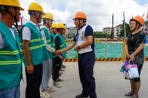 7月22日上午,集團黨委副書記、工會(huì)主席陳播軍來到南橋源南橋塘公共綠地更新改造工程現場,慰問高溫下堅守崗位的一線施工人員,向(xiàng)他們不畏烈日的辛勤工作表示感謝,并叮囑他們在堅守崗位的同時(shí)要注意勞逸結合,謹防高溫中暑。