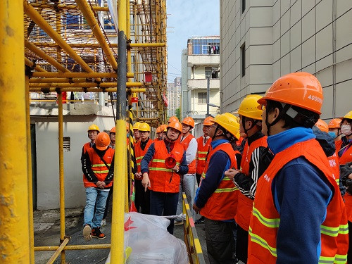 10月22日上午,葉昌平老師在2021年金彙鎮南百小區等五個小區舊住房修繕工程項目現場對(duì)于施工臨時(shí)用電、鋼管扣件腳手架搭設、材料堆放等文明施工進(jìn)行現場教學(xué)。下午,在公司7樓會(huì)議室,葉老師對(duì)大家進(jìn)行了扣件式鋼管腳手架安全技術培訓。