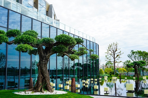 植物配置上結合原有場地内百年廣玉蘭及原有樹木進(jìn)行配置設計,品種(zhǒng)選擇多使用一些開(kāi)花觀葉植物,調和彌補原有多常綠樹木的現狀。施工過(guò)程中最大的難點就(jiù)是要解決場地内原有百年古樹廣玉蘭的保護和複壯,既要保障施工正常開(kāi)展,又要确保施工期間的環境變化對(duì)樹木本身不造成(chéng)太大的影響。因此,在施工期間,項目組持續觀測,并邀請樹木保護專家對(duì)其進(jìn)行評估。施工期間針對(duì)其生長(cháng)勢,進(jìn)行了複壯處理,在後(hòu)續的養護中,也安排專人對(duì)其進(jìn)行檢測,每月檢查其根系及樹木長(cháng)勢。