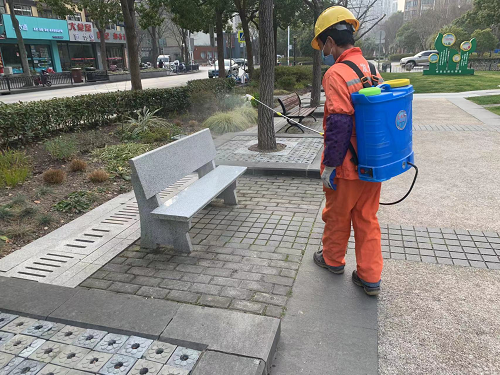 在做好(hǎo)環境衛生整治的基礎上,按照“不留邊角、點面(miàn)結合”的原則,每日對(duì)遊樂設施、健身器材、座椅、垃圾桶、台階扶手等公共設施進(jìn)行全面(miàn)噴灑消毒,爲疫情防控營造良好(hǎo)環境,确保市民生命安全和身體健康。